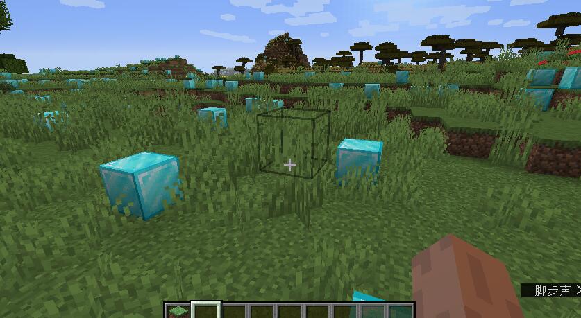 可以发现, 生成的world中, 按照我们的设定, 在地表草方块上零散的分布了钻石块.