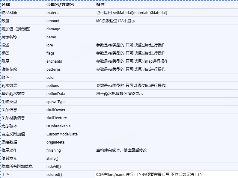 TabooLib 内置了一套 关于 构建物品 编辑物品 修改/获取 NBT 的工具