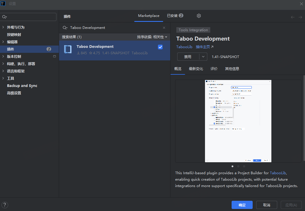 打开 IDEA -> Plugins -> 搜索 Taboo Development -> 安装此插件