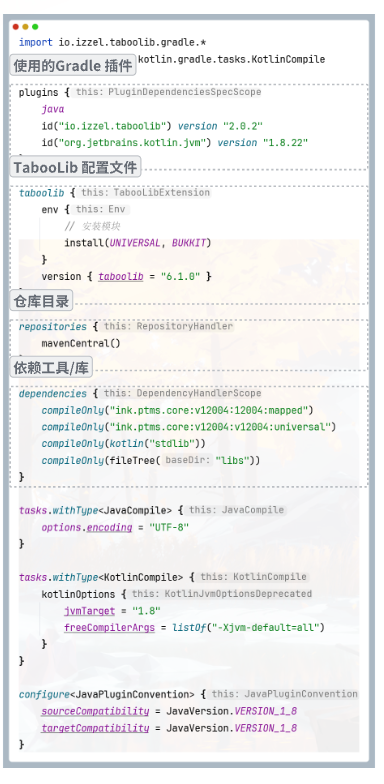TabooLib特点之一,开发者无需下载不需要的前置库,各取所需即可 如果还不确定自己会用到什么模块也不要着急,后续仍然可以在Gradle配置文件中配置Install