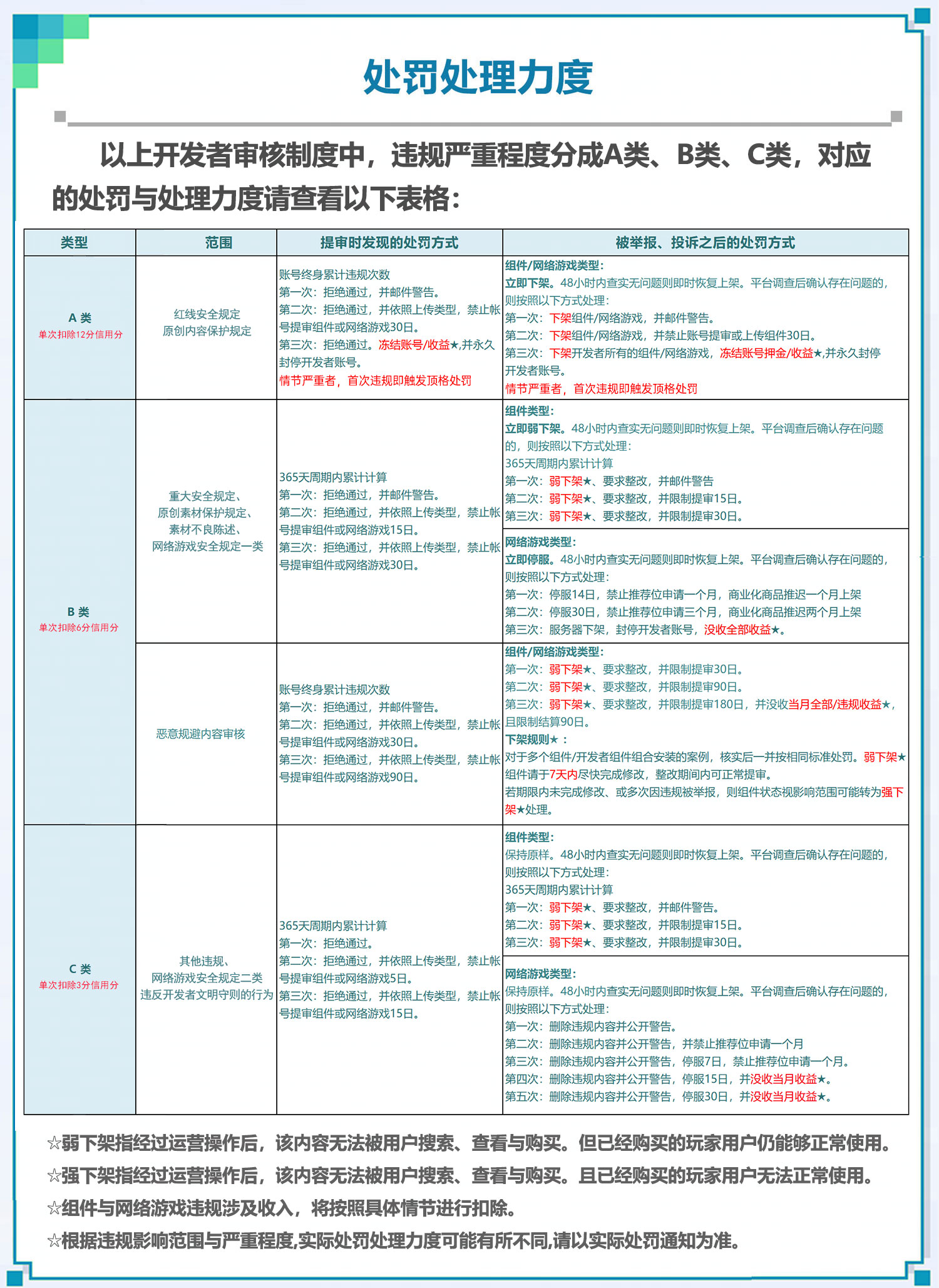 违反开发者内容审核制度的开发者,将会按照【处罚处理力度】进行处罚处理;若发现开发者有违反内容审核制度或侵权行为,可以通过网易我的世界手游或端游客户端的举报功能进行举报。