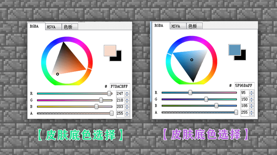 (注:所有的取色都可以在贴图外的地方进行留色,这样可以很好的保证色彩不会在后期绘制后偏移原色噢~在贴图显示外的地方留色不会影响到人物皮肤本身,所以空白处可以随意使用,并且还可以留下你们自己的署名。)