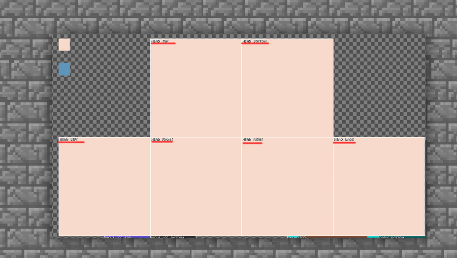 设置好后我们只需要绘制中间的body部分,也就是身体的贴图就OK啦,左右两边是手脚暂时不用绘制。