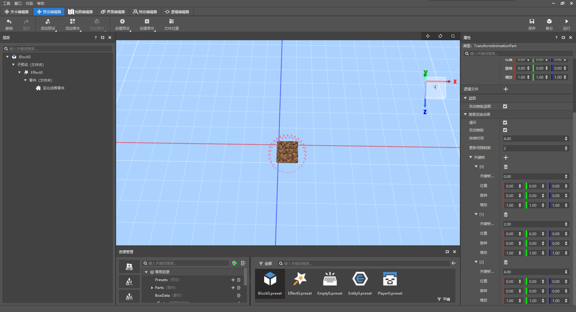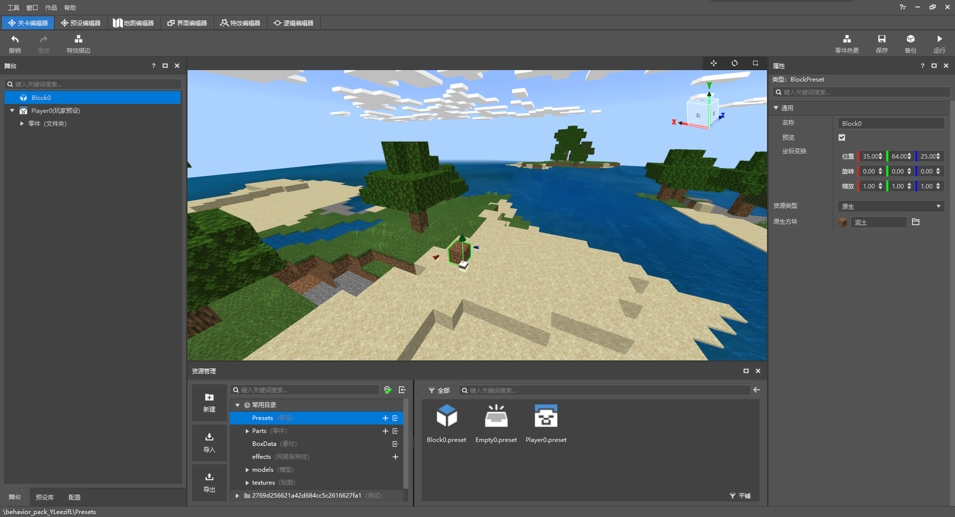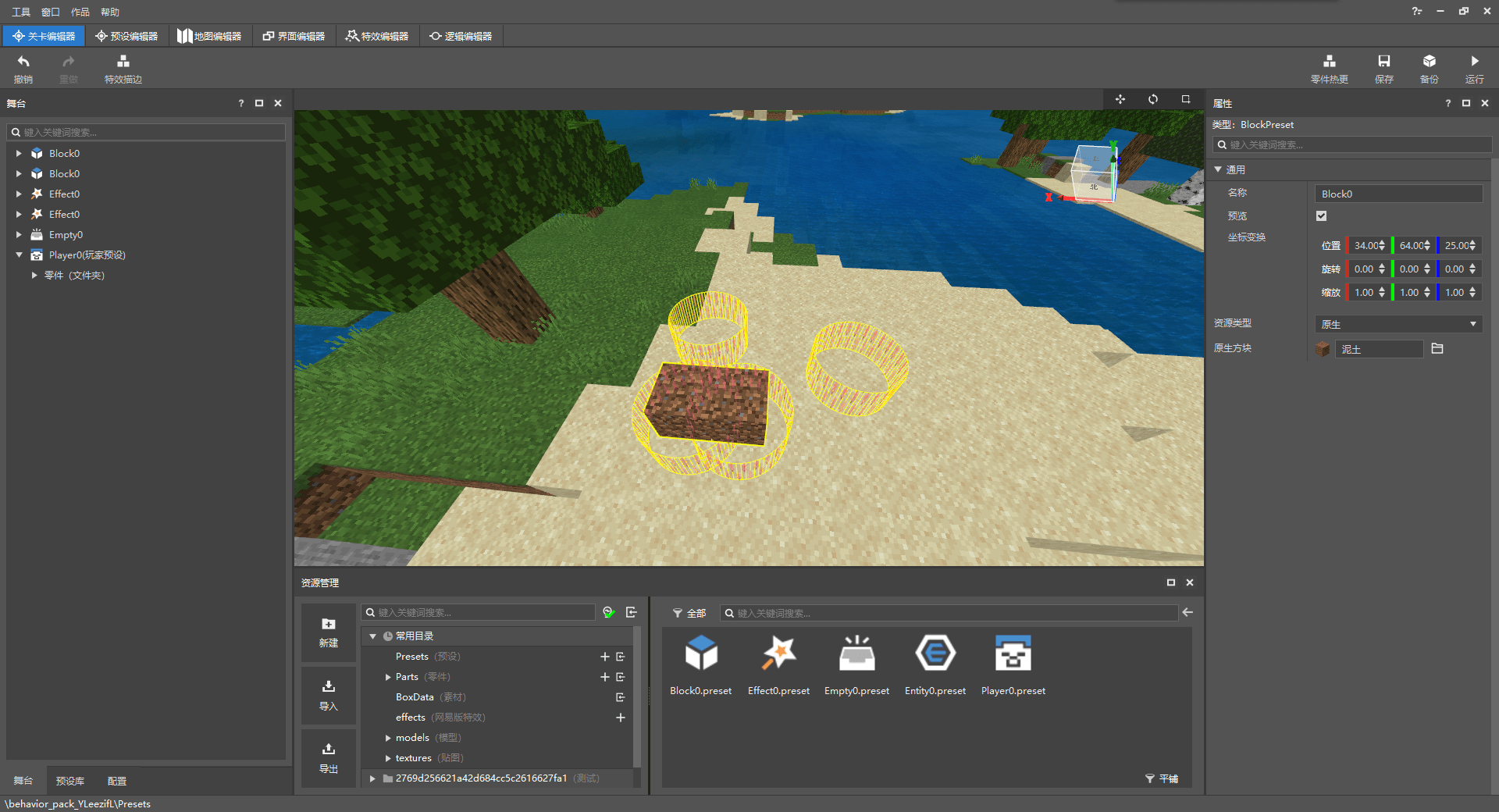 比如图中的泥土就是个方块预设。