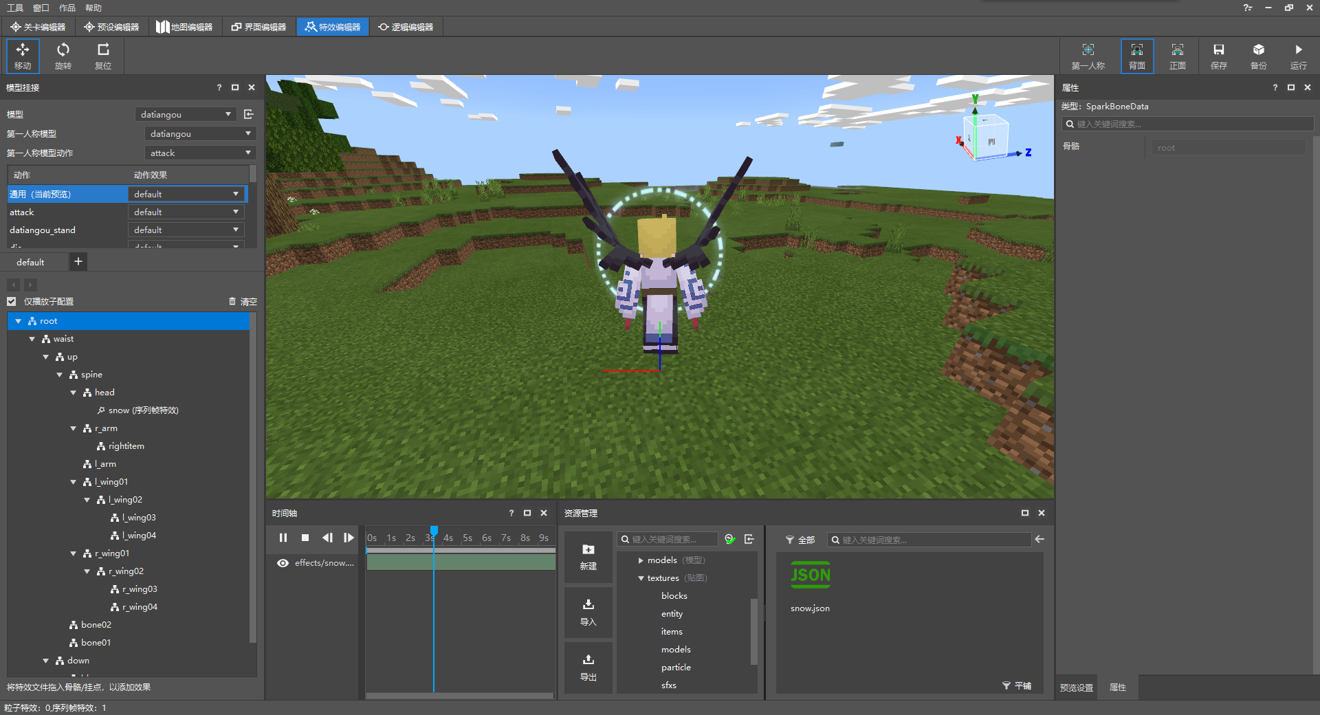特效编辑器可以编辑网易版特效,并将其挂接到骨骼模型上。