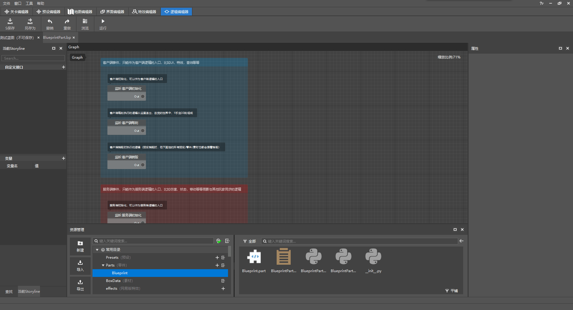逻辑编辑器可以使用图形化编程的形式来编写模组的逻辑代码。